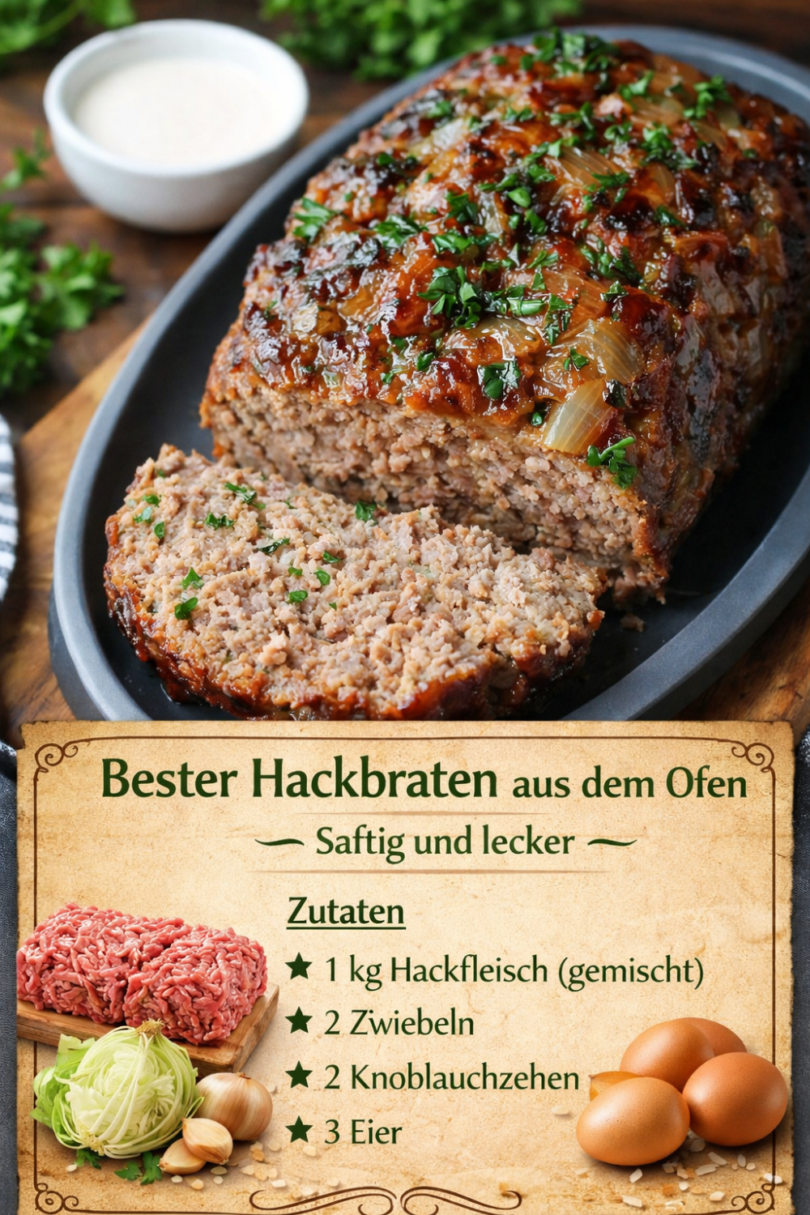 Rezepte Bester Hackbraten aus dem Ofen – saftig, würzig & wie bei Oma 😍🍖 19 Stunden agoAdd Commentby Sylvia Baumann212 Views Written by Sylvia Baumann Zutaten 1 kg Hackfleisch (gemischt) 2 Zwiebeln 2 Knoblauchzehen 3 Eier 100 g Weißbrot oder Toast (eingeweicht) 125 ml Milch 2 EL Senf 1 EL Paprikapulver (edelsüß) 1 EL Petersilie Salz und Pfeffer 1 Prise Muskat (optional) 2 EL Öl für die Form Bitte gehen Sie zur nächsten Seite oder klicken Sie auf die Schaltfläche „Öffnen“ (>), um die Kochschritte abzuschließen und vergessen Sie nicht, es mit Ihren Facebook-Freunden zu TEILEN. Page 1 of 2 Prev Next FacebookWhatsAppXPinterestLinkedIn