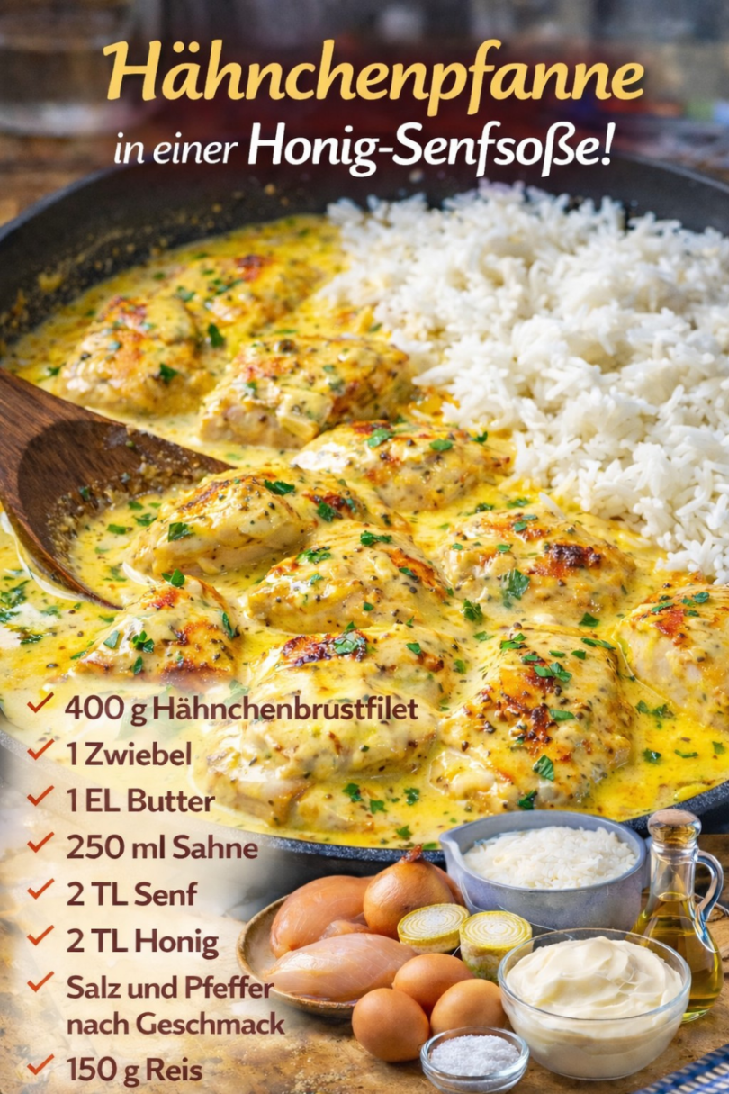 Hähnchenpfanne in Honig-Senfsoße – cremig, würzig & einfach jede Woche ein Genuss 😍🍗
